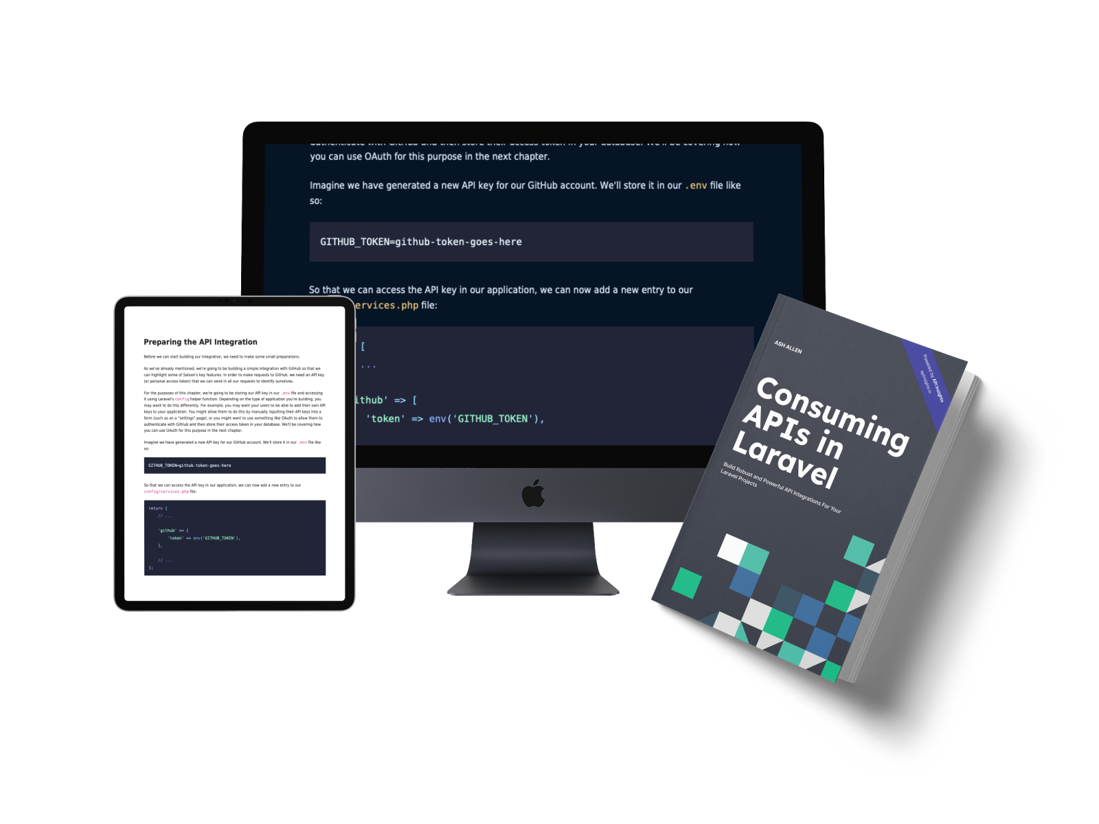 Get instant access to both ebooks in this bundle! Battle Ready Laravel: A guide to auditing, testing, fixing, and improving your Laravel applications. Consuming APIs in Laravel: Learn how to confidently integrate third-party APIs in your Laravel projects using maintainable, testable and extensible code.
